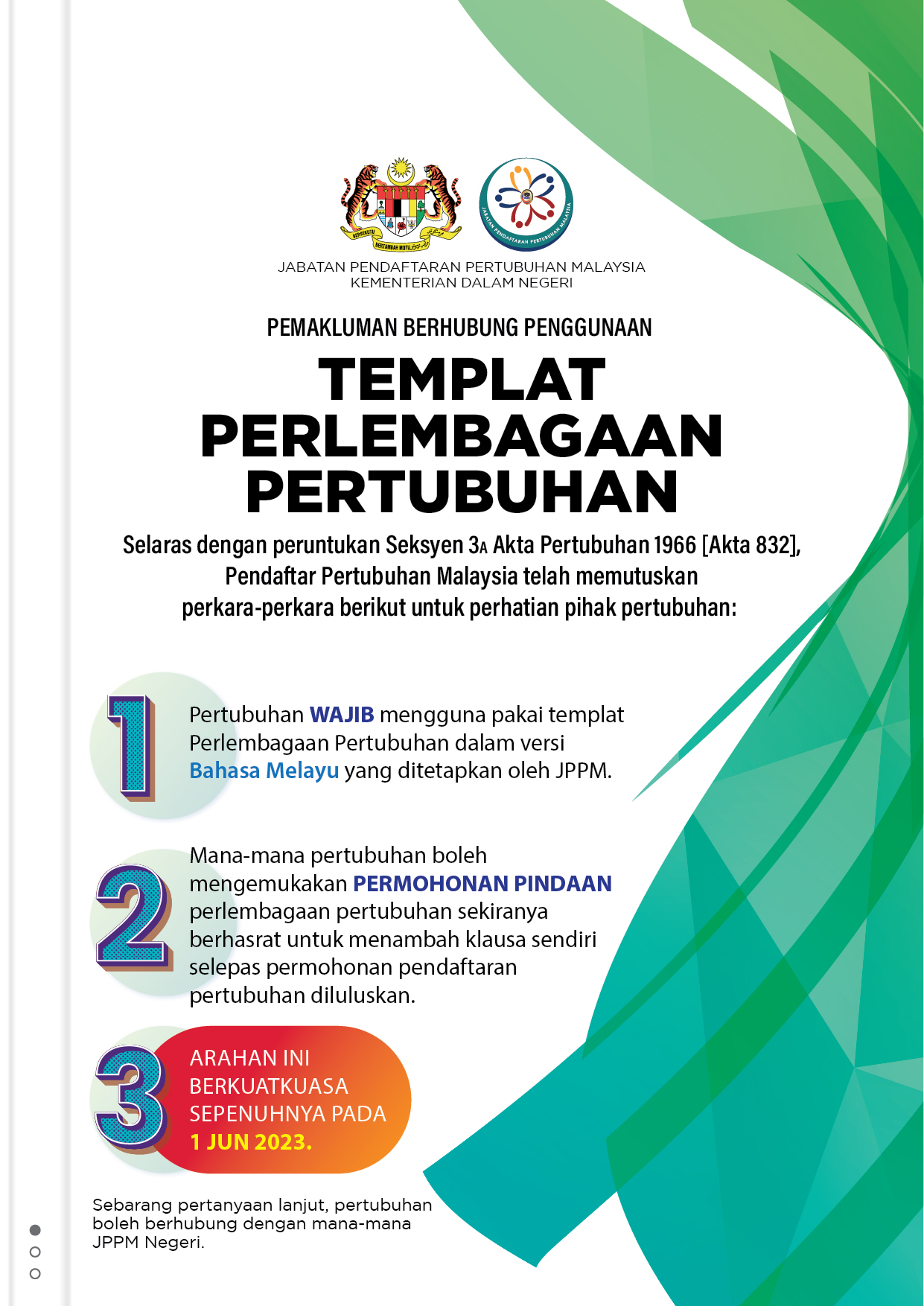 On 1 June 2023, the Registry of Societies (ROS) issued a Notice stating that, pursuant to Section 3A of the Societies Act 1966, the ROS had made the following directives which take effect from 1 June 2023: